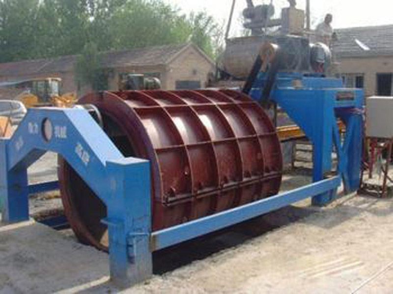 懸置在機架上的輥軸穿過水泥管模具,在電機驅動下,傳動軸帶動輥軸以規定速度旋轉。在輥軸與管模兩端擋圈摩擦力作用下,管模與輥軸作同方向旋轉。此時,由人工或機械投入的混凝土拌合物在旋轉離心力作用下鋪在管模內壁,當混凝土拌合物料層厚度超過擋圈高度后,即開始受到輥軸與管模內擠壓。隨著料層厚度的增加,輥軸對混凝土的壓力越大,并逐漸使混凝土拌合物達到預期的密實度。在輥壓成型過程中,混凝土拌合物除受到輥壓力作用外,還同時受到管模旋轉造成的離心力和管模由于投料均勻性影響而形成的自身振動力的作用。輥壓成形原理即是通過上述工藝過程和三種力的組合作用(其中主要是輥壓力),使混凝土拌合物密實而形成管模。